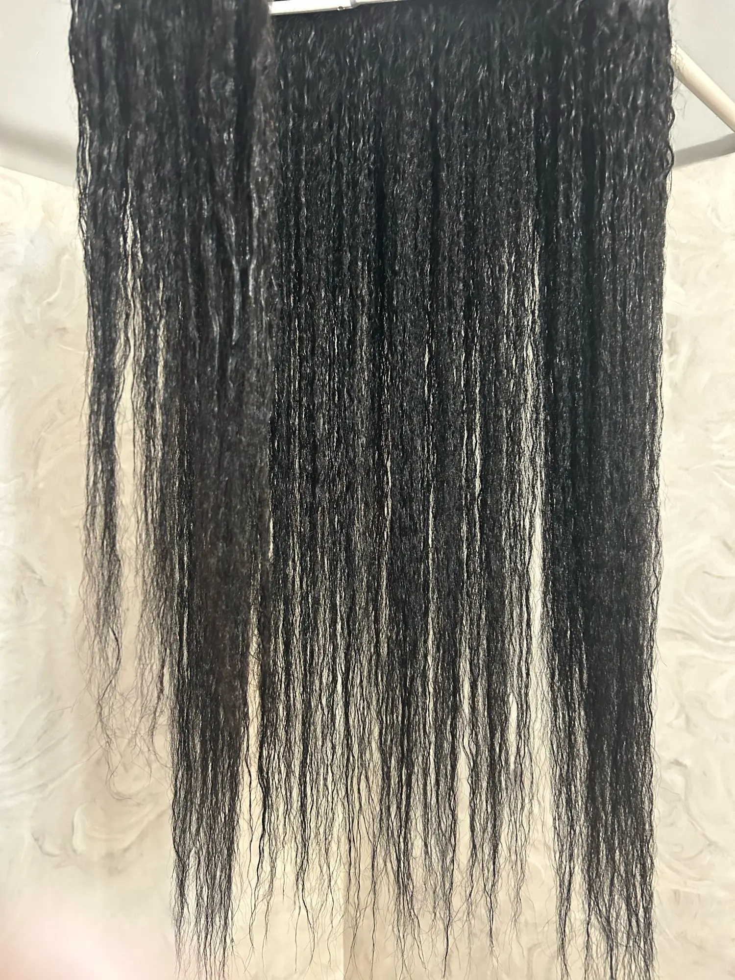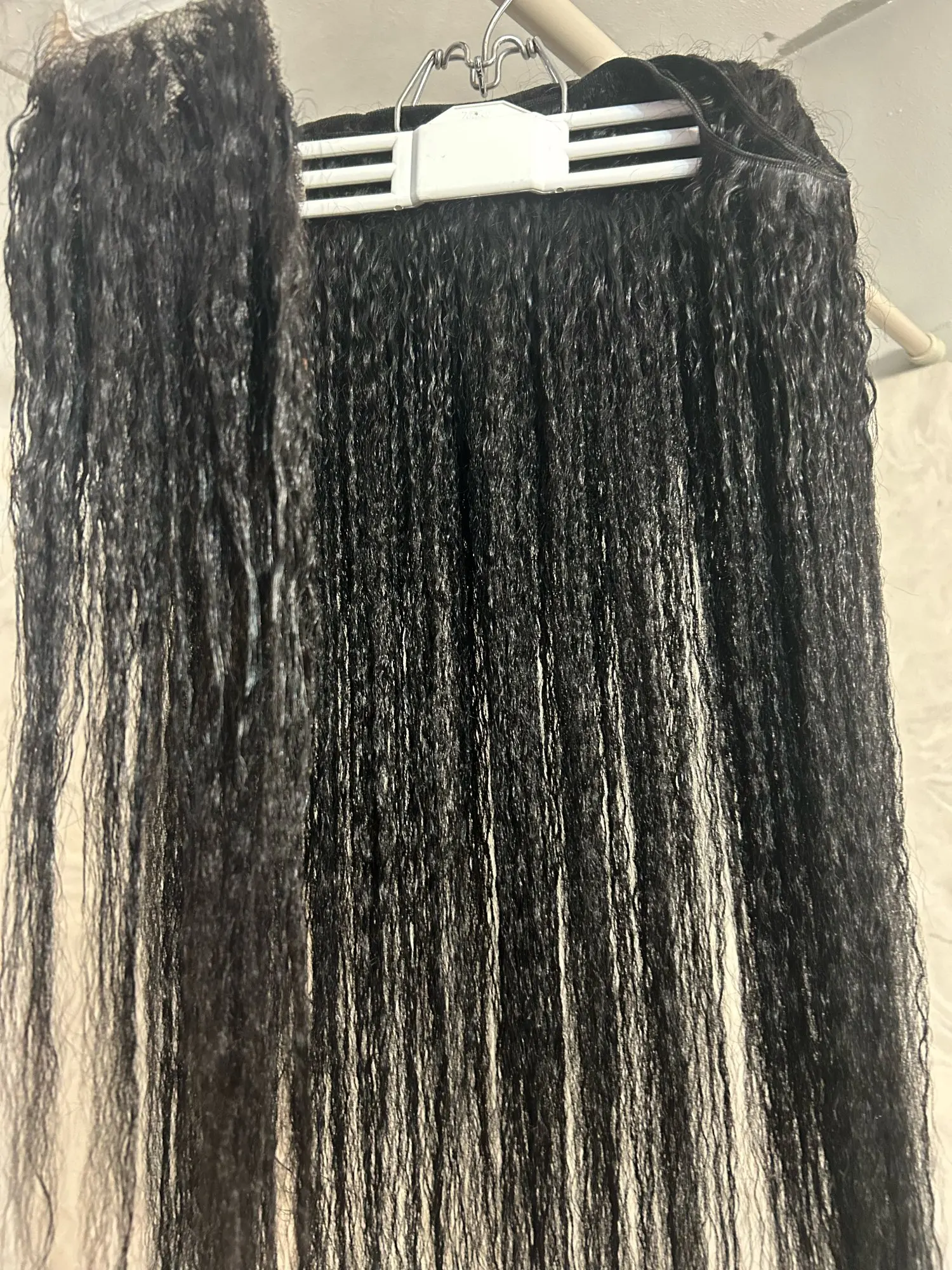 This is the hair after washing. 26” . Ends are okay, may still trim but the hair itself is gorgeous after washing. Did not tangle too much, minimal shedding, slight chemical smell but the water did not dirty too much when rinsing shampoo out. Great luster and texture!